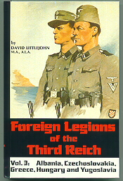 Reich Volume 3 By David Littlejohn This volume continues the tradition of quality with its in depth coverage of the history, uniforms, insignia, decorations, and flags of foreign forces fighting with Germany in WWII. The collaborating political parties in Czechoslovakia (Sudetenland, Bohemia-Moravia, Slovakia), Greece, Hungary, and Yugoslavia (Croatia, Serbia, Slovenia) are also detailed in text and illustrations. In addition, an updated addendum for the first two volumes of the series is included. OUT OF PRINT |