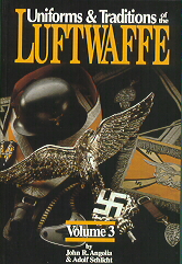 and Traditions of The Luftwaffe Volume 3 by John R. Angolia & Adolf Schlicht This volume concludes the highly-acclaimed Luftwaffe series. It includes hundreds of introduction orders and photographs of the following subjects: Luftwaffe Field Divisions, Make and Female Auxiliaries, Miscellaneous and Individual Equipment, Special Garments and Equipment of Flying Personnel, Small Unit Weapons, Luftwaffe Colors, Personal and Command Flags, Bands and Fife and Drum Corps, Licence Plates and Colors of Motor Vehicles, and Military Abbreviations. 592 pages,over 1,000 photo's/illustrations, deluxe binding. OUT OF PRINT |