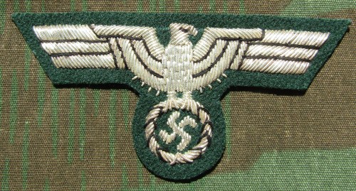 RSE43.German Army Generals breast eagle on Dark Green. Overall about 4.4" x 1.75". $15.00