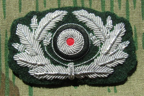 RSE583.German Army officers cap eagles. Hand embroidered wire on Dark Green. $13.95