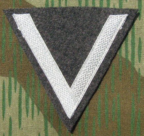 RSE557.Luftwaffe Obergefreiter sleeve chevron. Aluminum tress on black wool. $10.95