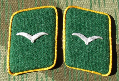 RSE612.Luftwaffe enlisted ranks collar tabs.Green cloth with White piping