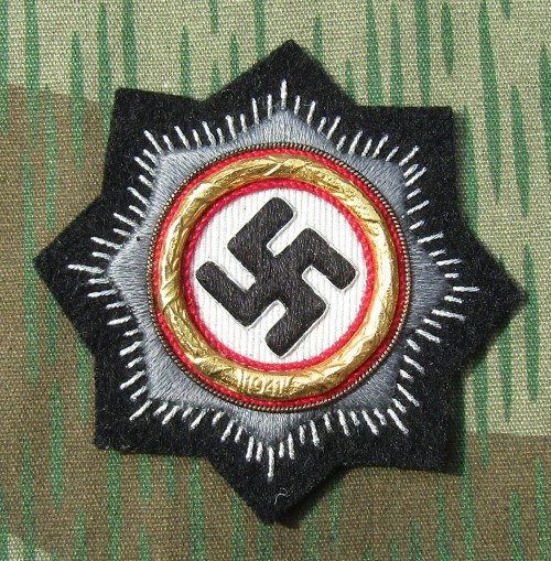 RSE269.Embroidered German cross in gold on Blue Grey.