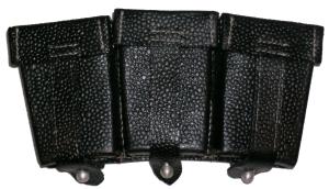 | ERRK98BL.Reproduction K98 pouches. Black leather for Army, Waffen SS , etc. These are genuine cow leather. The pebble finish is slightly larger then the original German ones , studs are 2pc aluminum. $15.00 |