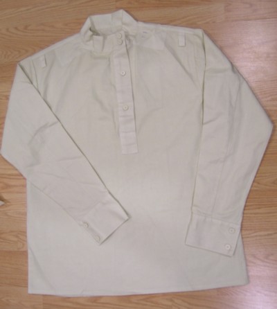 | IMPRUSSHRT1.Imperial Russian enlisted ranks summer weight Gymnasterkas. These are made from a kind of Off White Russian cotton linen. No pockets. 4 button front. Made in Russia. $109.95 |