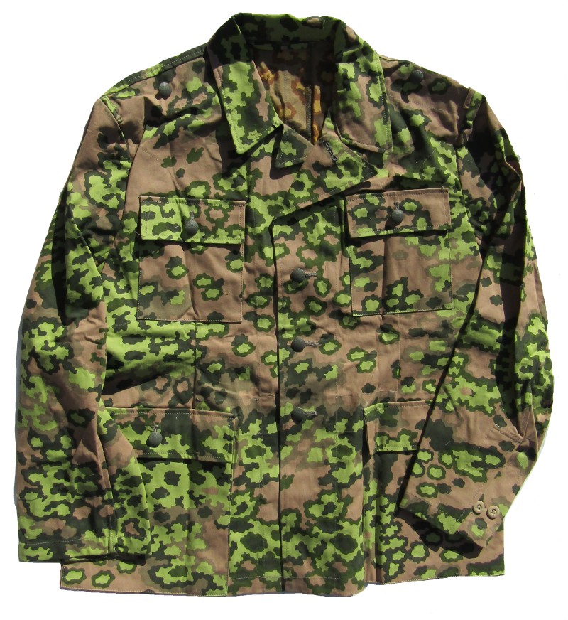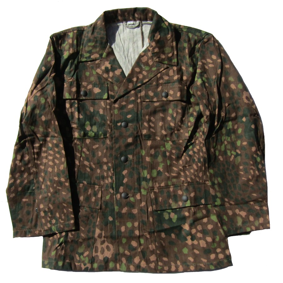 WW2 M44 Waffen SS DOT pattern jackets. Nice heavy 100% Cotton twill fabric, Roller printed. 4 pocket with loops and buttons for shoulder boards. $39.95 |