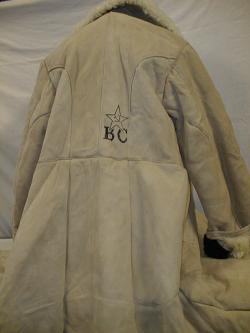 coat is the black outlined star with hammer & sickle and BC underneath. Has loops on