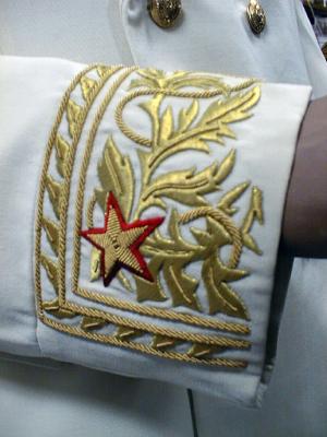embroidery around cuffs and gold embroidered generals collar insignia,