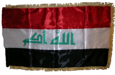 IF2.New Iraqi flag without stars and with gold fringe. Size about 47 x 28 inches.