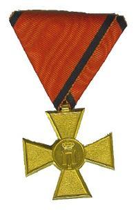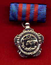 Gilt bronze. With original pentagonal ribbon, red and blue strips, also with ribbon
