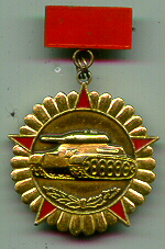 Soviet medalic BADGE with an image of a TANK. Without any inscription, with small red