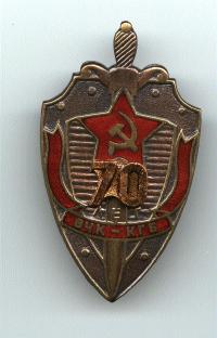 badge for 70 years of the VChK-KGB. Type 1. $15.00